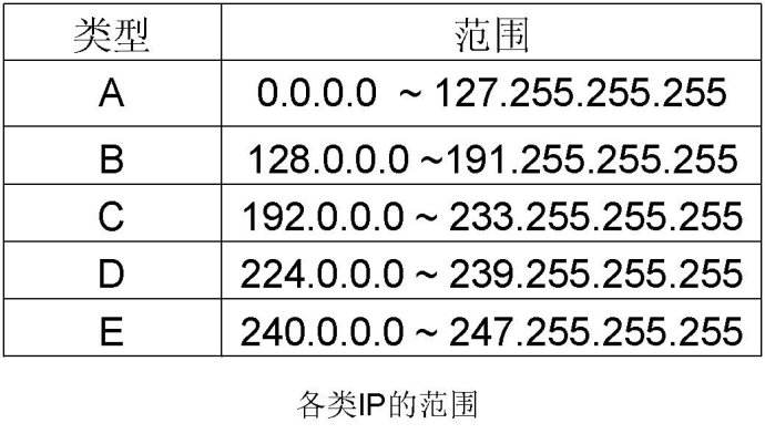 一個A類IP地址由1字節的網絡地址和3字節主機地址組成,網絡地址的最高位必須是“0”,地址范圍從1.0.0.0 到126.0.0.0。可用的A類網絡有126個,每個網絡能容納1億多個主機。